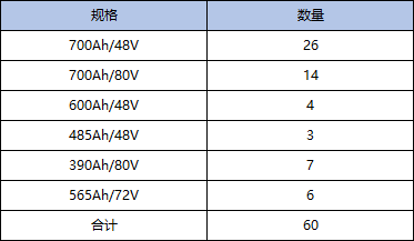 ***有限公司,自動(dòng)生產(chǎn)線上負(fù)責(zé)原料輸入和產(chǎn)品輸出有30輛叉車,按照一車二電配置,每天二班倒,每班12小時(shí)。2020年4月底在如下列表電池規(guī)格安裝了60套護(hù)延神,電池品牌主要是霍克/HAWKER、杰士湯淺/GS和林德,年份在2017~2020年間。
