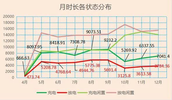 4、各月充電、放電、充電閑置和放電閑置時(shí)長(zhǎng)情況:
