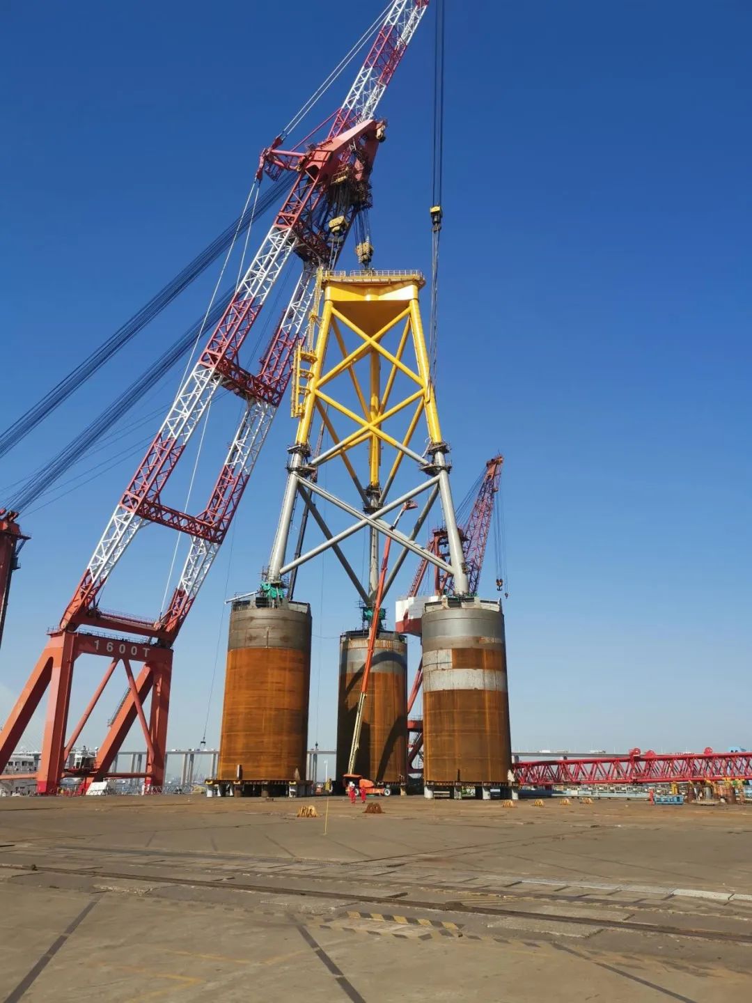 該項目中,一個吸力筒導(dǎo)管架共有9個總拼合攏口,合攏口位置和方向具有唯一性,施工難度大。在各部門的共同協(xié)作和精心策劃下,項目順利完成合攏作業(yè),不僅為后續(xù)作業(yè)奠定了良好的開端,提升了公司海上風(fēng)電制造水平,也為踐行國家綠色發(fā)展戰(zhàn)略作出積極貢獻。