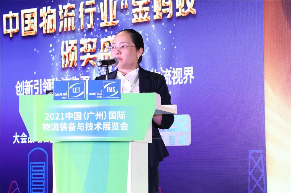 2021第六屆中國智慧物流大會暨中國物流行業(yè)金螞蟻頒獎盛典于5月25日在廣州舉辦,廣州市物流技術(shù)與應(yīng)用協(xié)會秘書長、漢諾威米蘭佰特展安(廣州)有限公司董事&總經(jīng)理陳琳女士致辭,她對前來參加此次頒獎盛典的各位嘉賓們表示熱烈的歡迎,并對舉行頒獎盛典的意義進行了闡述:舉行這個隆重的頒獎儀式,一方面是給獲得榮譽的企業(yè)鼓勁、加油,另一方面,也是號召更多的企業(yè)向行業(yè)優(yōu)秀的企業(yè)學習,進一步增添企業(yè)開創(chuàng)的動力、再創(chuàng)佳績。