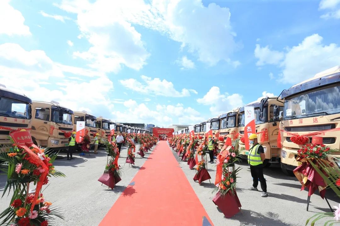 5月28日上午,在300多位嘉賓的見證下,首批50臺(tái)三一純電動(dòng)自卸車交付深圳杰深達(dá)實(shí)業(yè)有限公司,隨著車輛金鑰匙的遞交,現(xiàn)場50臺(tái)工程大車齊聲鳴笛,為雙方的強(qiáng)強(qiáng)聯(lián)手、合作共贏喝彩!