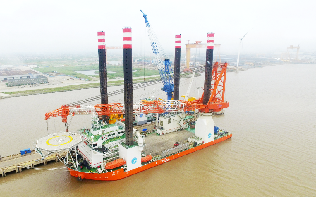 “群力”輪由我國自主研發(fā)設(shè)計(jì),船長132.6米,型寬42米,型深9米,定員220人,自持力20天,續(xù)航力3600海里,適用于無限航區(qū)航行,入籍中國船級(jí)社。該船配置了4根90米長的圓柱型樁腿及液壓插銷式升降系統(tǒng),單樁最大舉升能力5600噸,可在近海海域?qū)崿F(xiàn)自主升降,最大作業(yè)水深52.5米,可變載荷5000噸。該船還具備自航能力,可實(shí)現(xiàn)DP-2級(jí)動(dòng)力定位,安裝1200噸繞樁式重型起重機(jī),總起升高度140米。