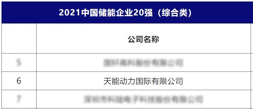 1天能上榜2021中國(guó)儲(chǔ)能企業(yè)20強(qiáng)