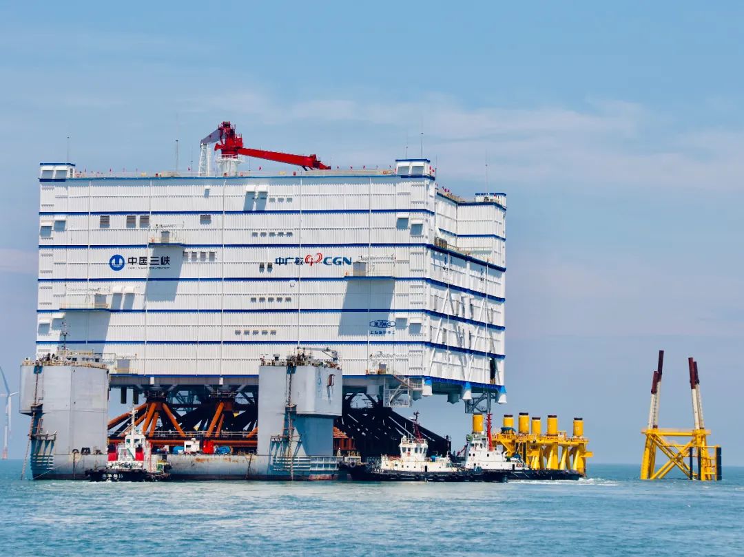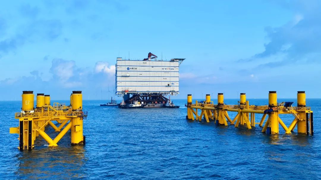 3厘米、2厘米、1厘米……“精準對接!成了!”晚上22點18分,隨著換流站上部模塊穩(wěn)穩(wěn)地“坐”在導管架上、運輸船移出導管架區(qū)域,陣陣歡呼聲涌起,一場歷時三天的海上“巨星安家記”終于落下帷幕。