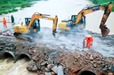 徐工挖機立即啟動應(yīng)急機制,調(diào)派周邊設(shè)備率先到達鶴壁浚縣,對衛(wèi)河進行全力封堵,以防決堤危險。次日,險情得到有效控制,而徐工挖掘機依然奮戰(zhàn)一線,繼續(xù)對沿河道路進行拓寬與修整,為后續(xù)救援提供保障。