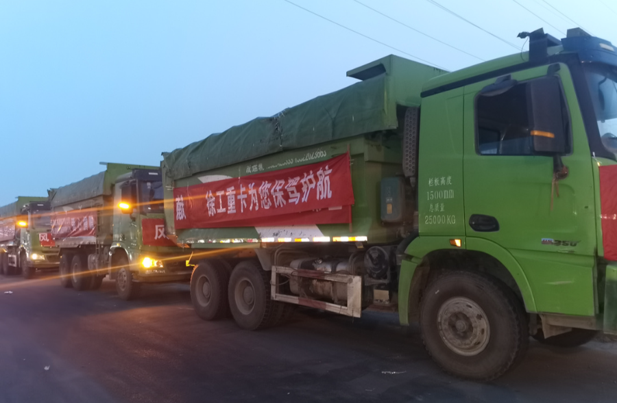 · 徐工重卡經(jīng)銷商鶴壁市鑫邦汽車銷售有限公司,馳援鶴壁市,在當?shù)夭少徫镔Y,運送600件礦泉水,400件方便面,兩輛徐工漢風(fēng)G5載貨車運送。