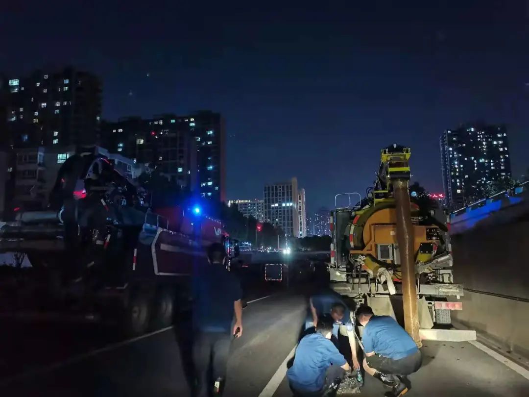 棉紡廠小區(qū),因持續(xù)暴雨導(dǎo)致地下管網(wǎng)爆裂,水流沖擊導(dǎo)致路基掏空,嚴重危急人民群眾生命財產(chǎn)安全。徐工聯(lián)合疏通車邊抽吸邊排水,方便快干水泥迅速形成強度,填補巨大的路基空洞。