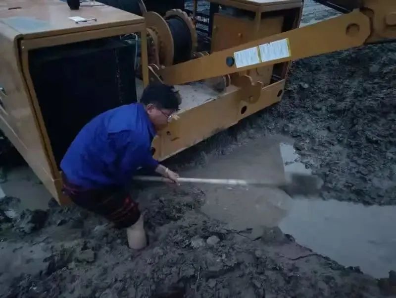 時(shí)間就是生命!在保證安全后,邵主任身先士卒,帶領(lǐng)駐地銷售與服務(wù)人員,聯(lián)合當(dāng)?shù)亟?jīng)銷商成立徐工建機(jī)河南緊急聯(lián)絡(luò)服務(wù)保障小組,第一時(shí)間沖向受災(zāi)最嚴(yán)重的客戶車輛駐地。