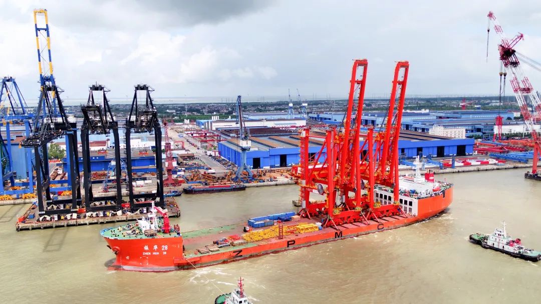 8月6日,“振華28”輪裝載加拿大溫哥華項目2臺岸橋從長興分公司發(fā)運,啟航前往用戶碼頭。