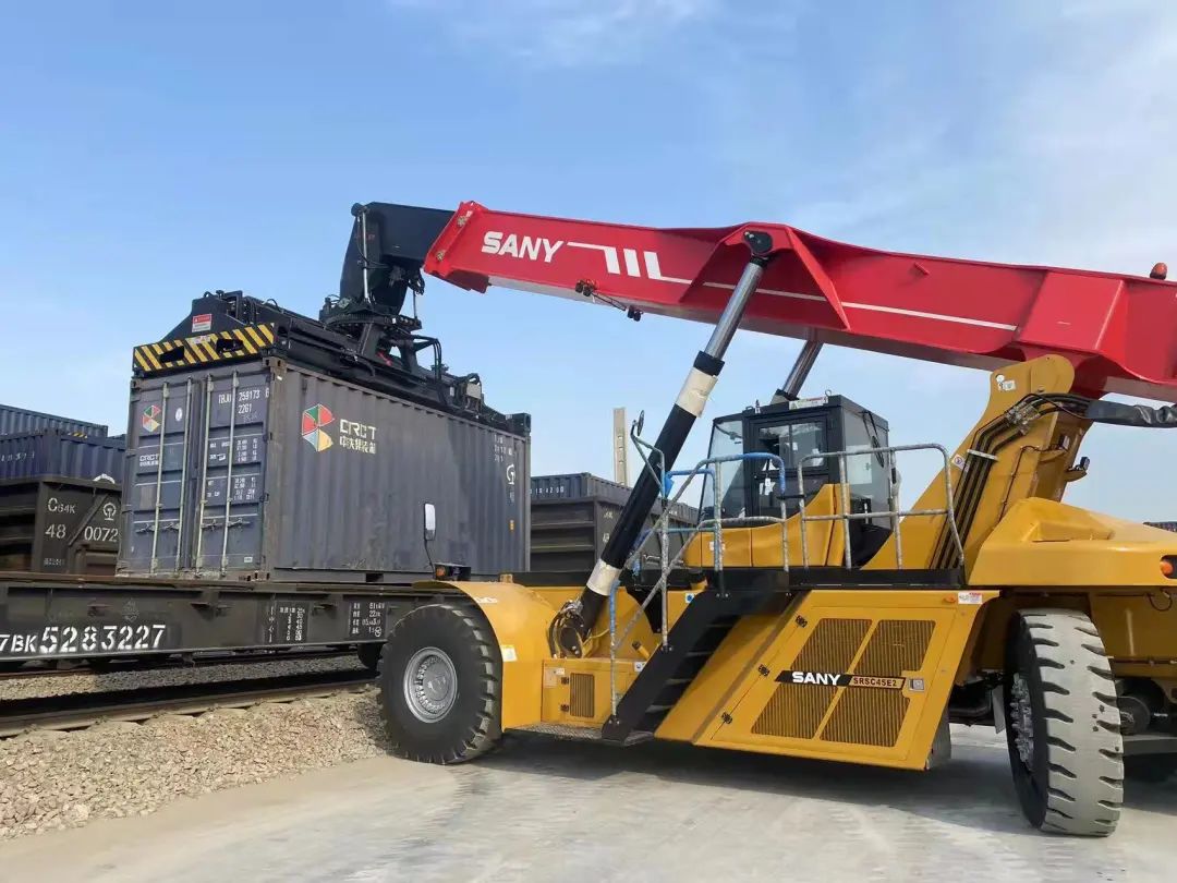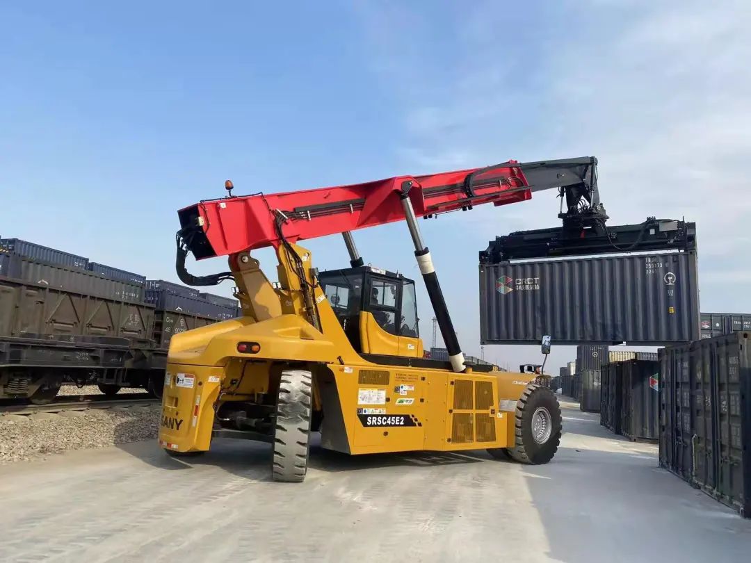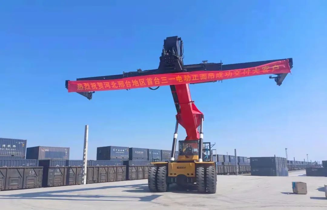 三一第二代混電正面吊SRSC45E2交付河北邢臺(tái)客戶(hù)投入使用,這是自去年7月和今年1月后,又一河北地區(qū)客戶(hù)購(gòu)入三一電動(dòng)正面吊。