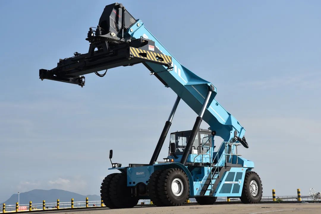 從“三一紅”到“三一藍”,三一全新VI電動正面吊在湖南投入使用