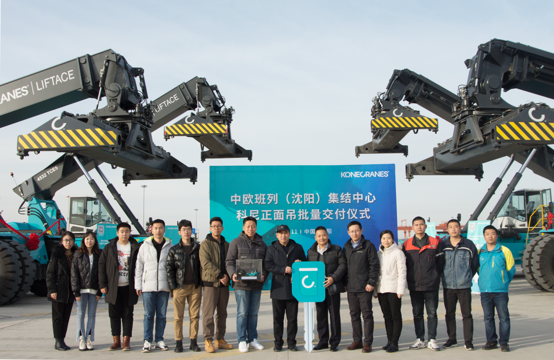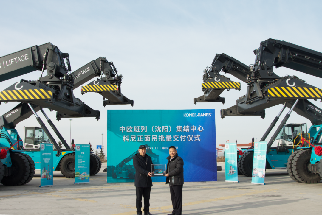 近日,在沈陽蒲河物流基地,KCL與中歐班列(沈陽)集結(jié)中心建設(shè)運(yùn)營公司舉行了隆重的交付儀式,4臺科尼正面吊Liftace 4532 TCE5批量交付至中歐班列(沈陽)集結(jié)中心,助力客戶中歐班列業(yè)務(wù)高質(zhì)量發(fā)展。中歐班列(沈陽)集結(jié)中心建設(shè)運(yùn)營公司財務(wù)總監(jiān)楊君山先生,KCL北方區(qū)總經(jīng)理任道紅先生出席交付儀式。