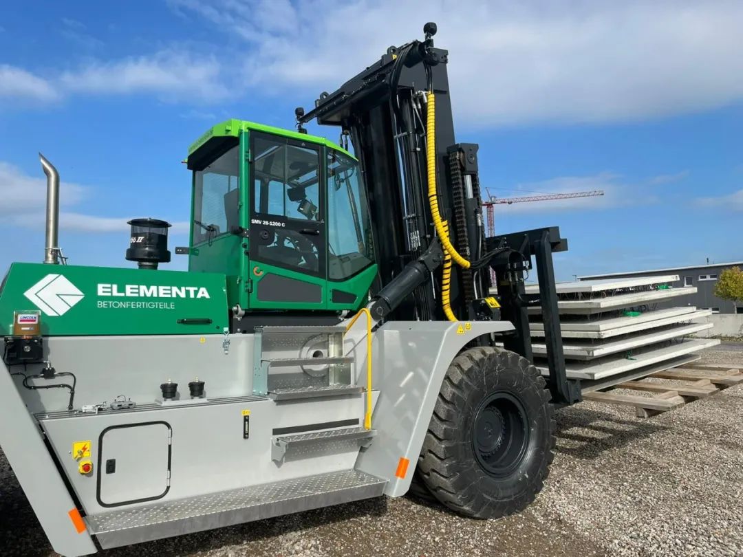 Elementa,德國最大的預(yù)制混凝土部件供應(yīng)商,再一次選擇了科尼叉車來搬運(yùn)他們的預(yù)制混凝土部件,車身采用了公司的綠灰色涂裝,代表著建筑行業(yè)也可以兼顧環(huán)保與可靠。