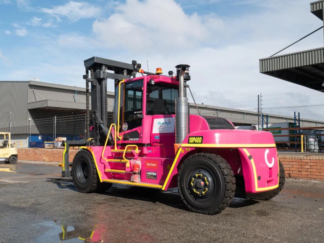 2022年4月,科尼向澳大利亞最大的礦業(yè)客戶交付了一臺(tái)特殊的科尼SMV16-1200C叉車,該車進(jìn)行了粉色涂裝,借以支持在西澳大利亞皮爾巴拉運(yùn)營的癌癥支持機(jī)構(gòu)Reach Us。