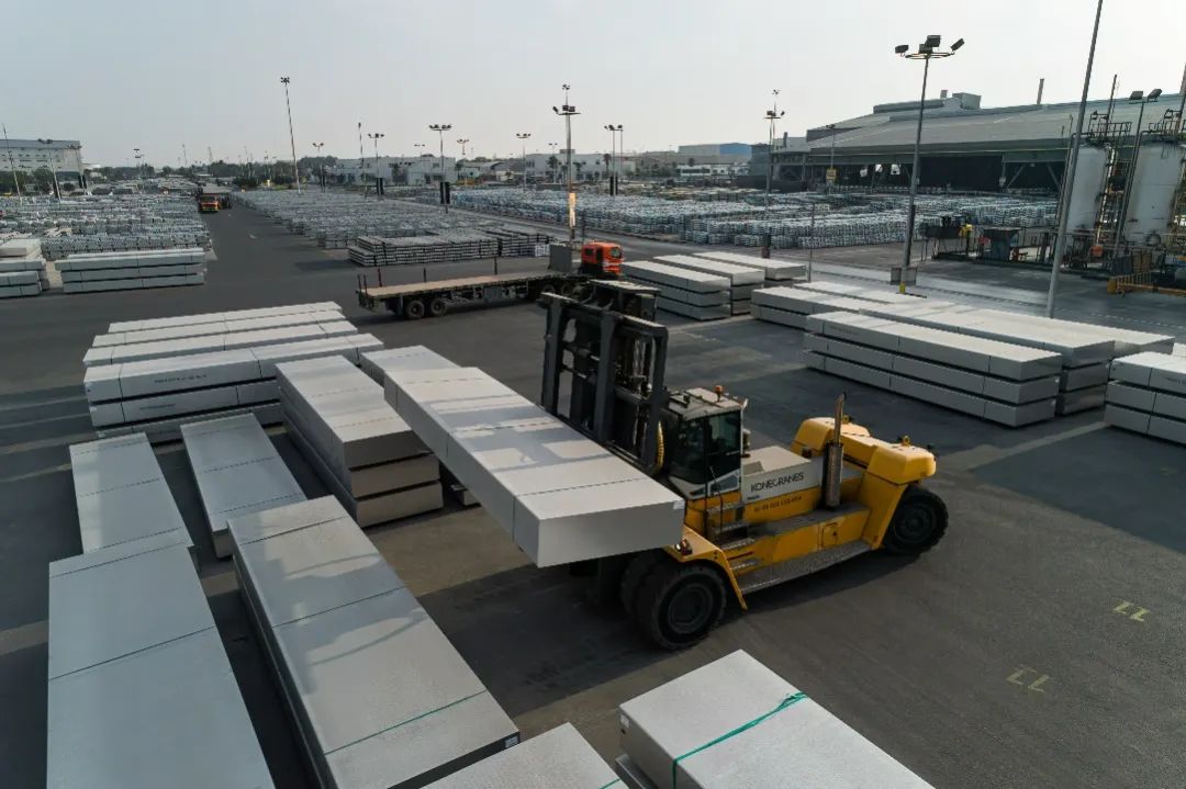 工業(yè)鋁制品生產(chǎn)對于生產(chǎn)和搬運(yùn)都有嚴(yán)苛的要求,因此,巴林鋁業(yè)(ALBA)很早就購置了兩臺科尼50噸重型叉車(SMV 50-1200C),專門用于30噸鋁板的轉(zhuǎn)運(yùn):從生產(chǎn)區(qū)搬運(yùn)到存儲區(qū),然后再運(yùn)送到倉庫。