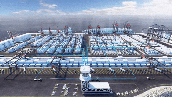 The RTGs use GPS for the Auto-Steering smart feature, which helps the operator keep the RTG on a straight drive path. Auto-Positioning places the spreader over the right container slot. Stack Profiling working with Auto-Steering to make sure the crane is properly aligned with the bay, and limiting hoisting speed for pick-and-place operations. Finally, the cranes use Auto-TOS (Terminal Operating System) reporting to count their own moves, map the position of every container and interface directly with the TOS.