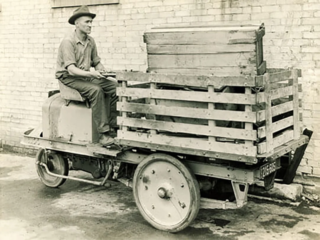 第一次世界大戰(zhàn)期間,許多美國工廠和倉庫缺乏運(yùn)送重型貨物的勞動力。為了彌補(bǔ)這一點(diǎn),1917年,美國CLARK設(shè)備公司推出了三輪平臺型工業(yè)車輛 “Tructractor”,這被認(rèn)為是叉車最初樣子,雖然它實際上沒有叉子,而且用不了多少年就更新了。