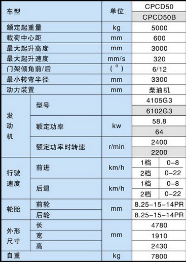 一拖5噸內(nèi)燃柴油平衡重叉車 CPCD50/CPCD50B